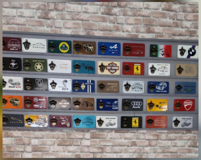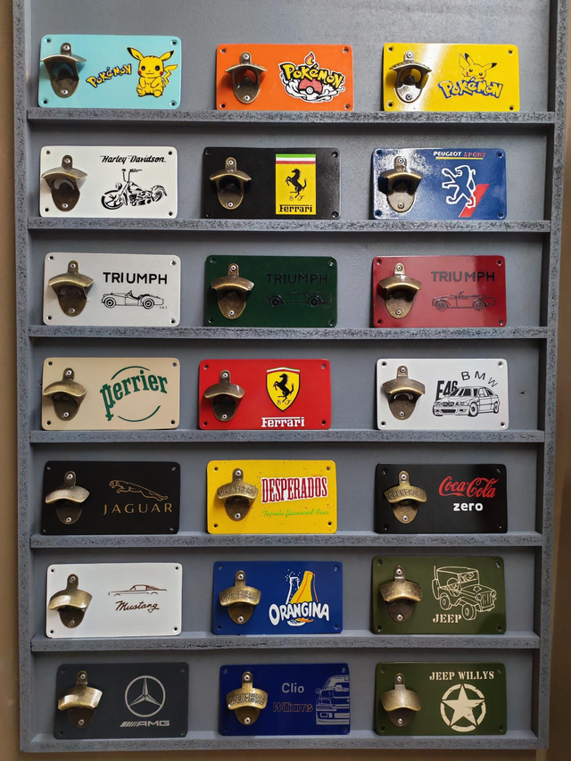 Un système d'ouvre bouteille est fixer sur la plaque en métal a l'aide de rivets.